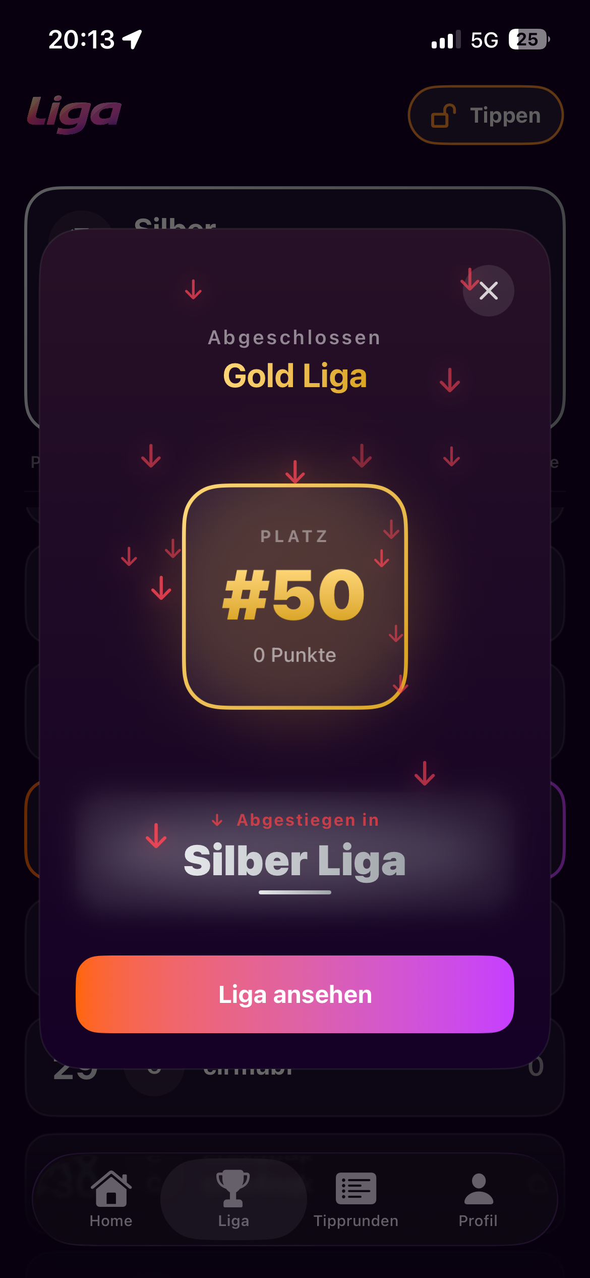 Das Fußball-Tippspiel mit privaten Tipprunden, automatischer Auswertung und einem Ligasystem, bei dem jeder Spieltag über Aufstieg, Abstieg und Stolz entscheidet.